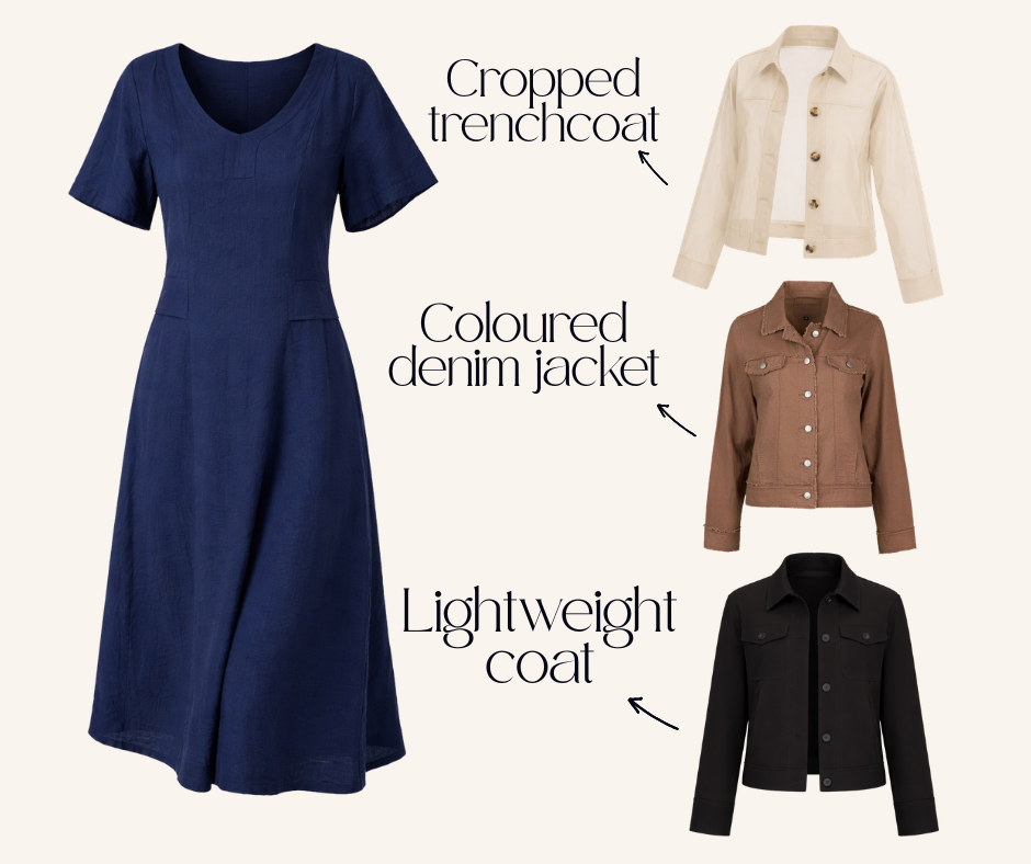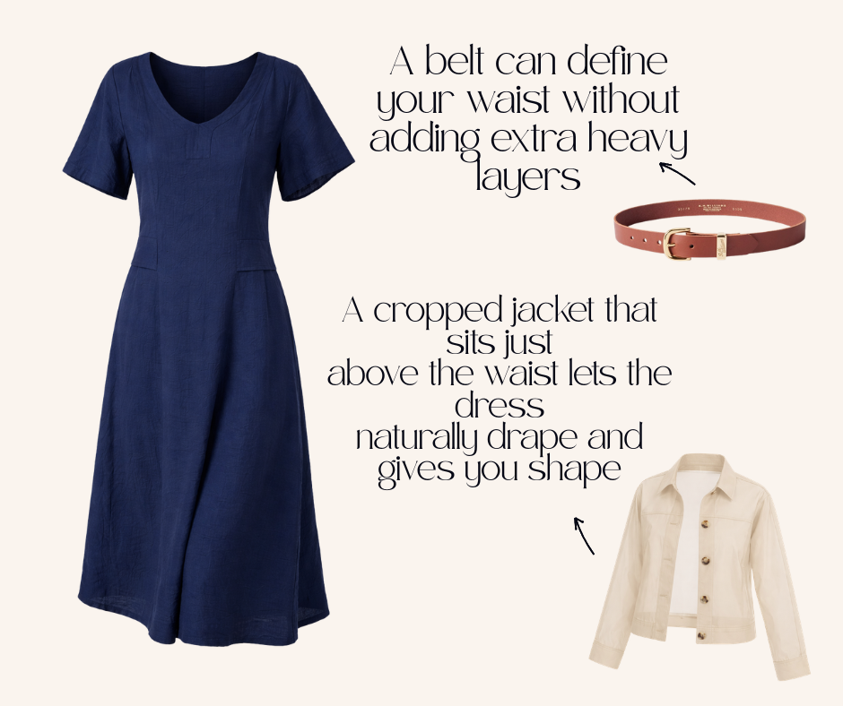Structure defines shape, creates balance, and adds warmth without heaviness. Shorter layers often work best with flowing dresses to keep proportions flattering.
